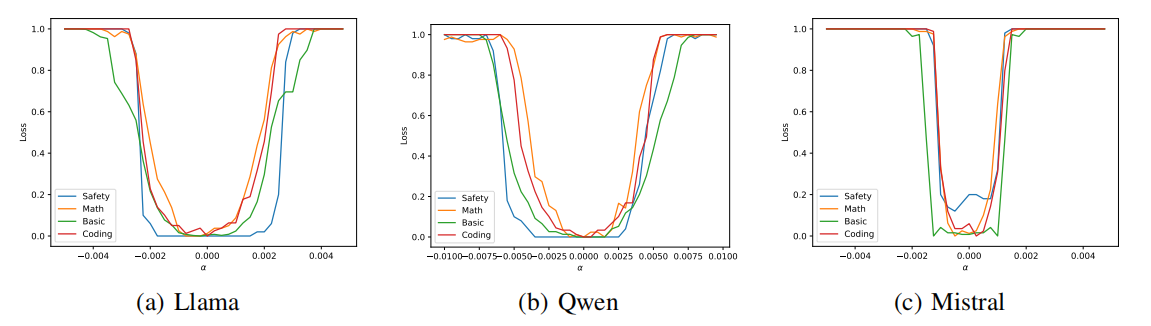 不同模型在不同任务上的损失景观,图片引用自Unveiling the Basin-Like Loss Landscape in Large Language Models